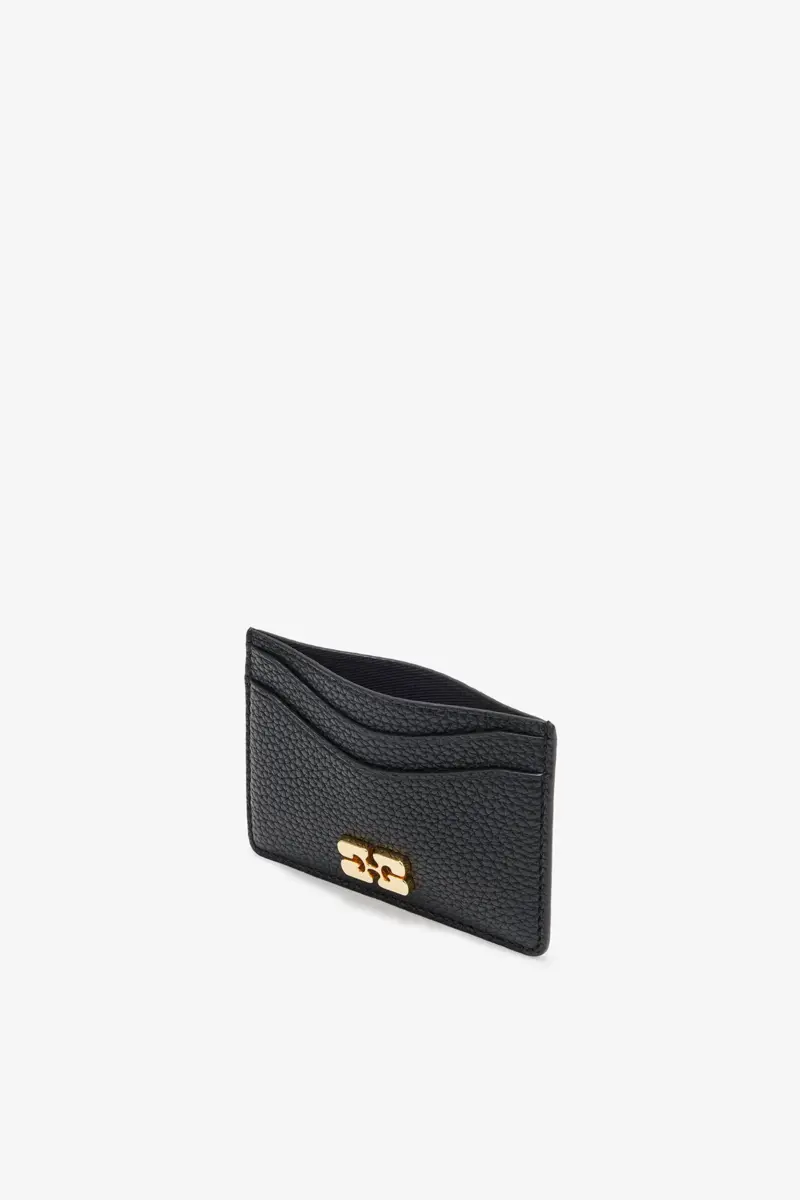 GANNI Card Holder in Grained Black with Gold