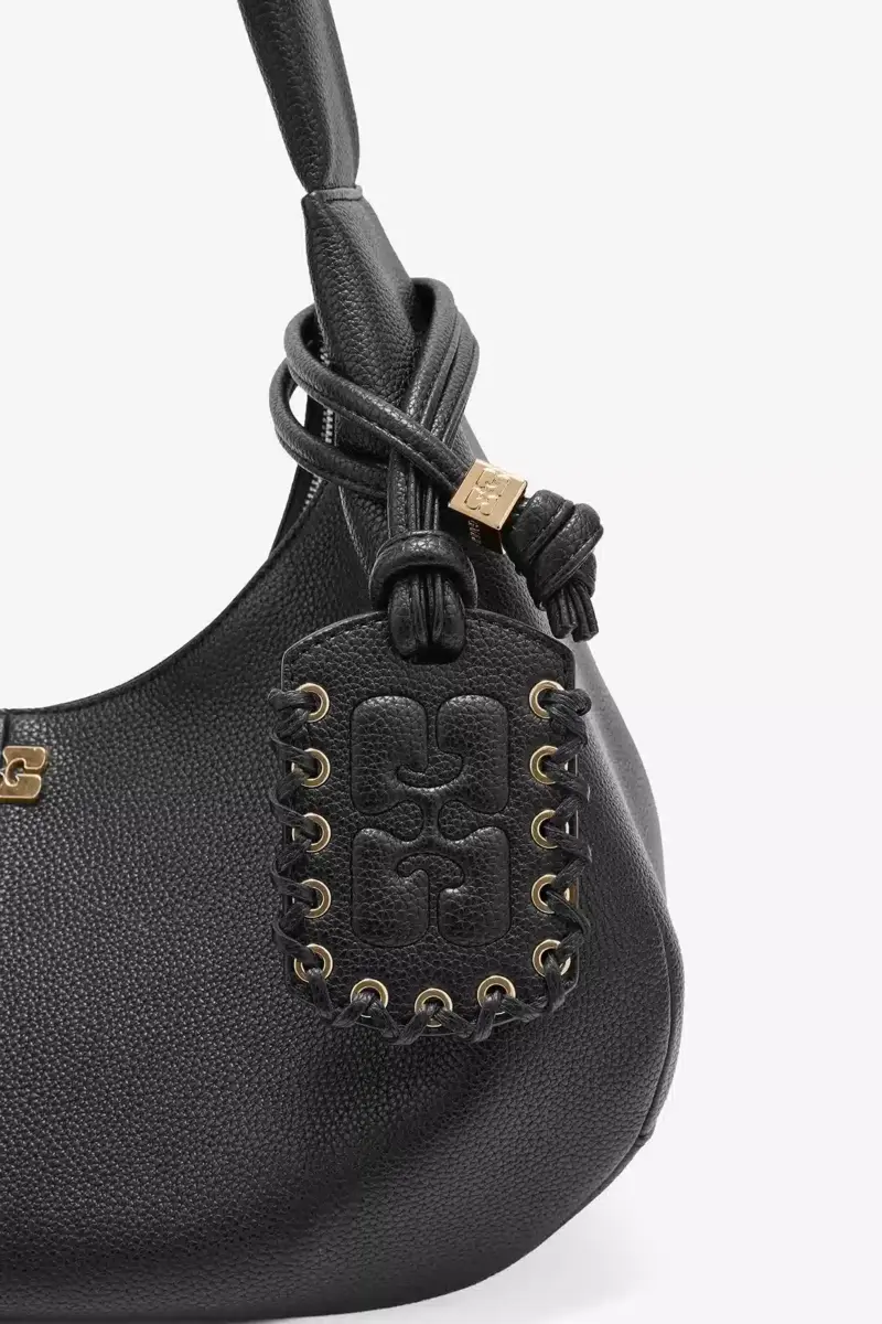 This bag features a shoulder strap, a zip closing and gold-tone GANNI Butterfly logo. The bag has a mirror hangtag and inside zipped pocket.