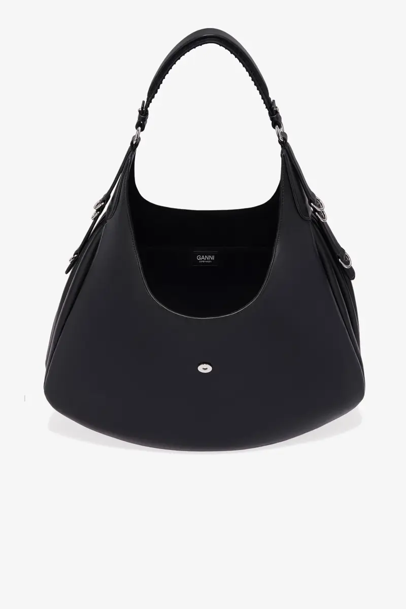 This bag features a accordian-style silhouette, a shoulder strap and D-ring detailing at the side. The bag has a tab closure with the signature GANNI Butterfly clasp in silver-tone, 1