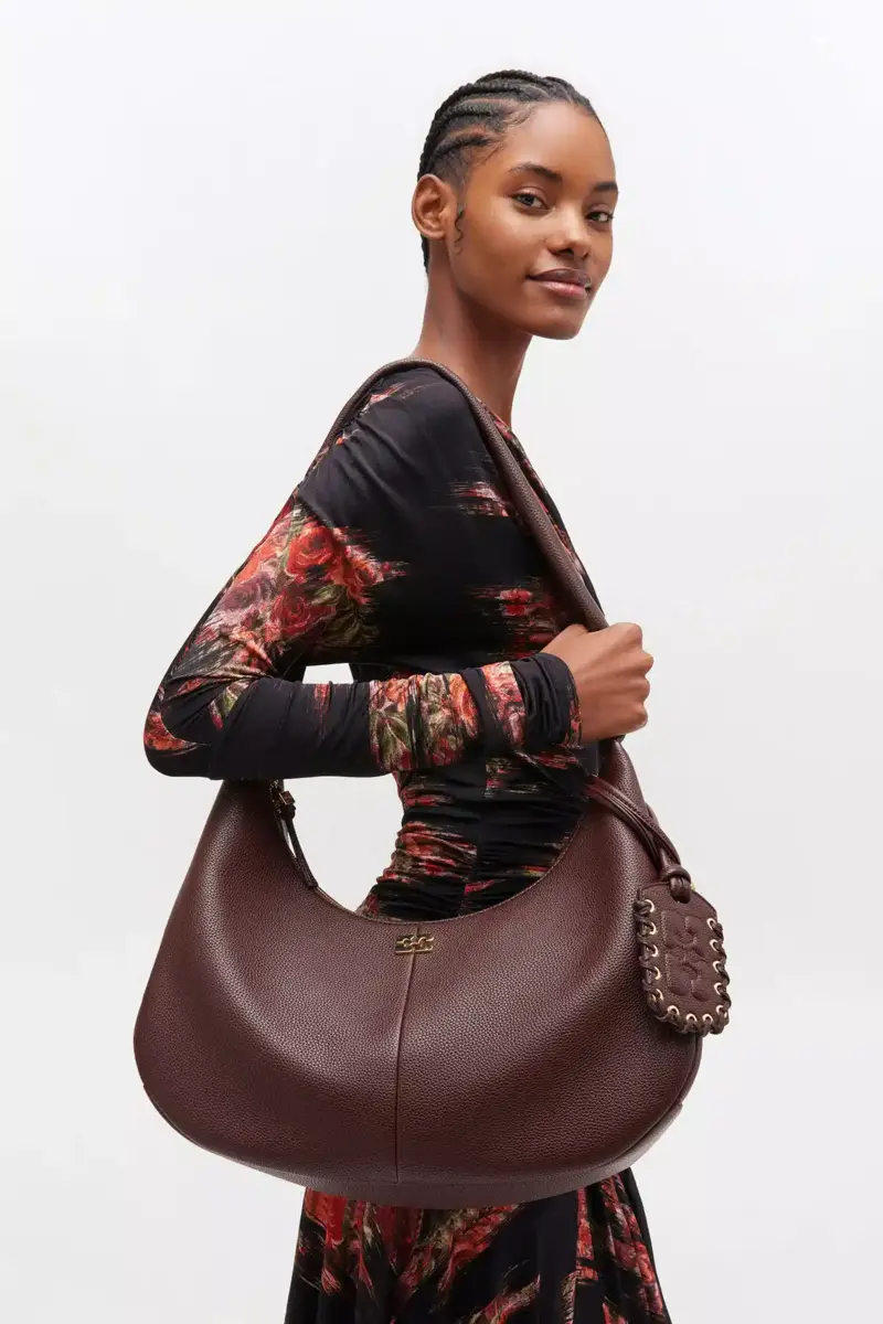 Brown Grained Medium Hobo Bag