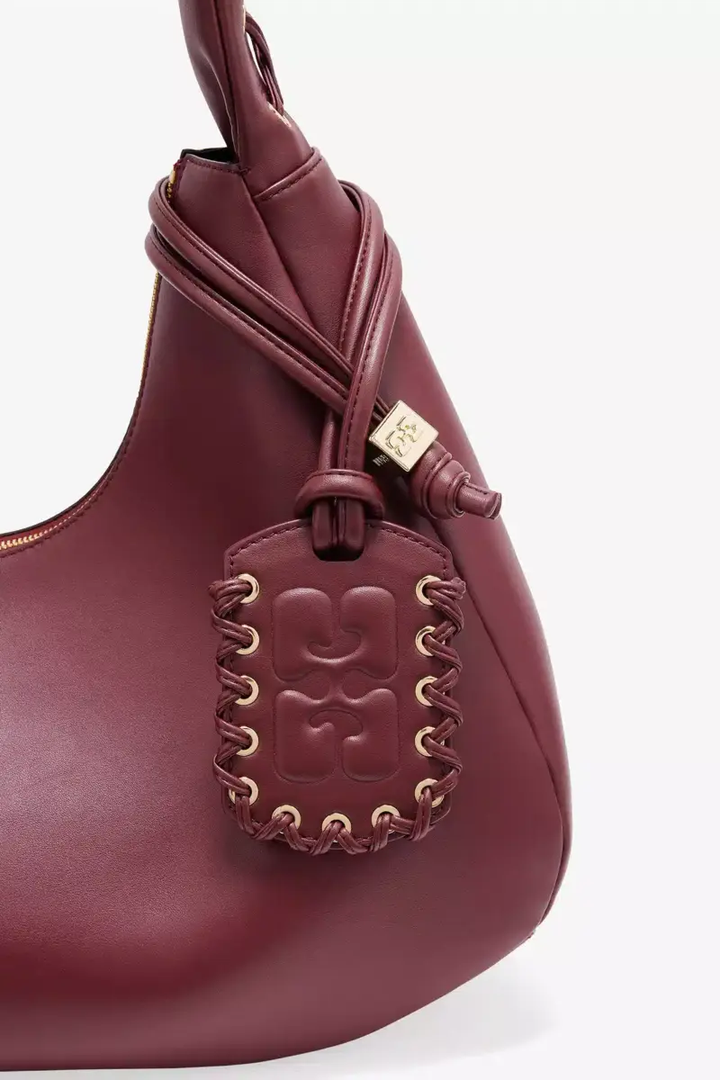 This bag features a shoulder strap, a zip closing and gold-tone GANNI Butterfly logo. The bag has a mirror hangtag and inside zipped pocket.