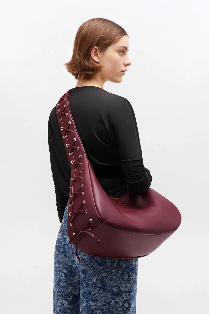 Be the first to review “Burgundy Medium Laces Hobo Bag”