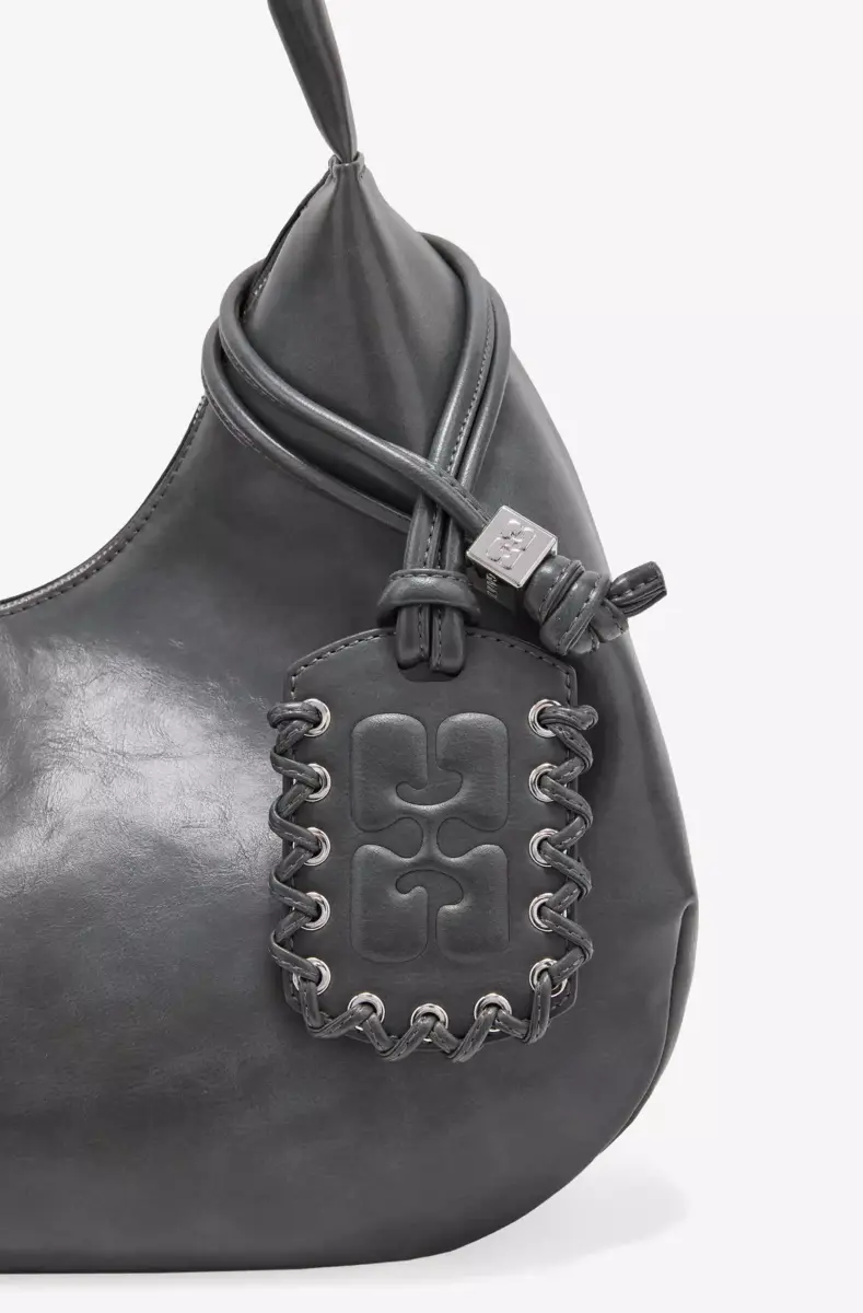 This bag features a soft and supple finish, a single shoulder strap and a zip closure. The bag has silver-tone hardware, a GANNI Butterfly logo and a mirror hangtag.