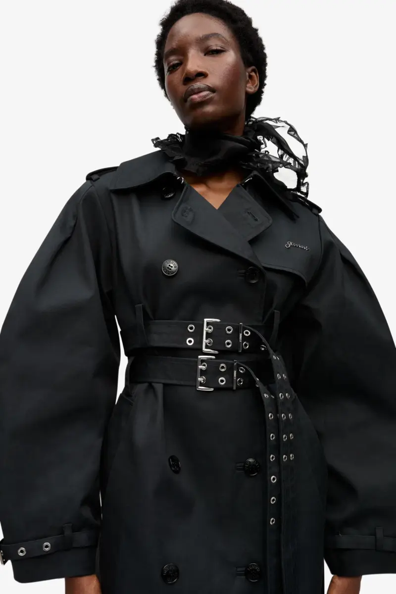 The Black Bonded Cotton Trench Coat is a timeless wardrobe staple that will see you through every season. Crafted from organic cotton, it