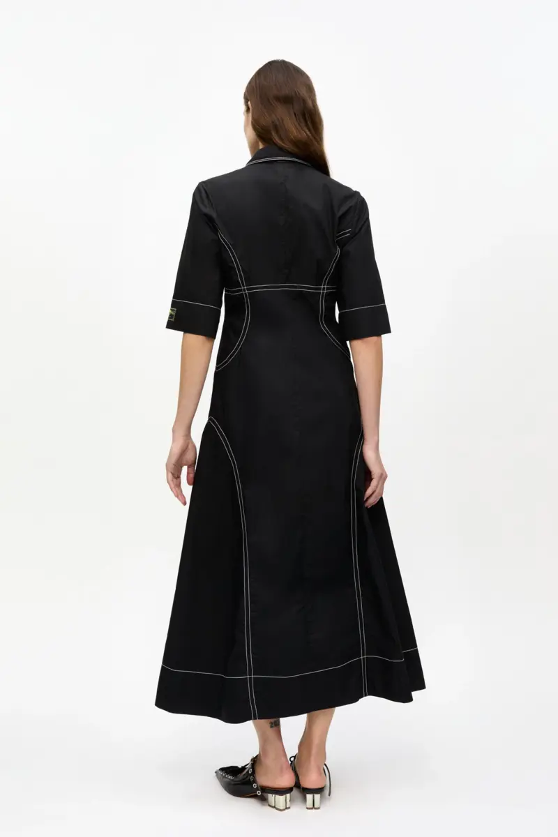 Black Cotton Poplin Shirt Dress