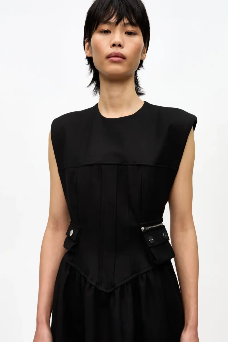 Introducing the dress silhouette of the moment, the Black Heavy Cotton Corset Midi Dress is designed in a feminine corset-inspired shape and crafted from heavy organic cotton with a hi