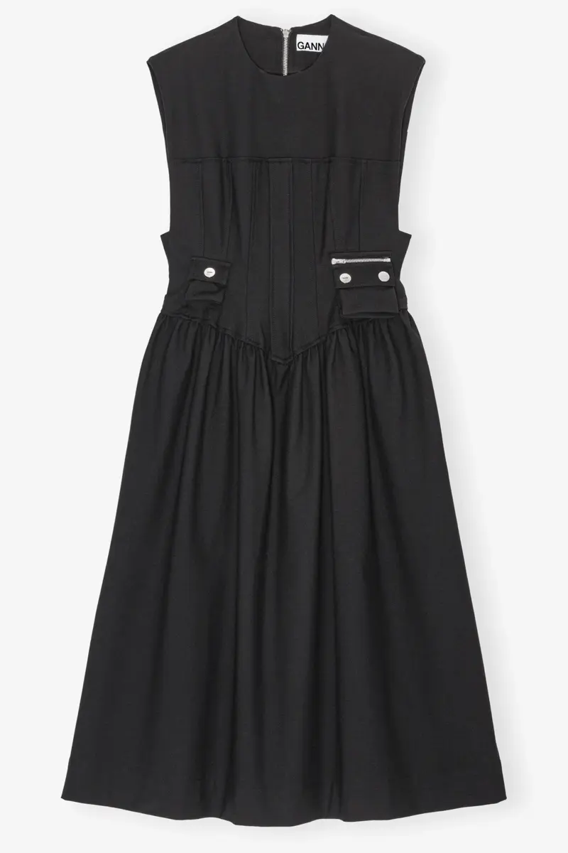 Black Heavy Cotton Corset Midi Dress