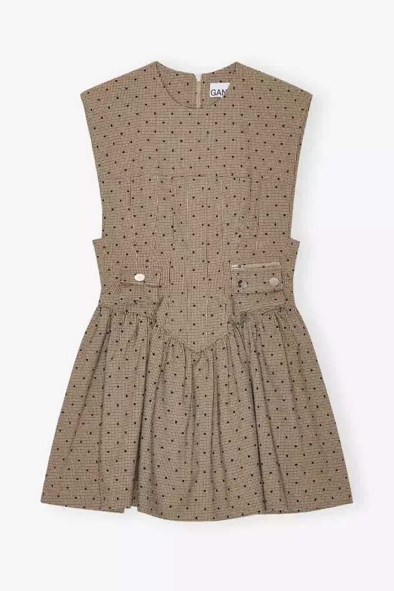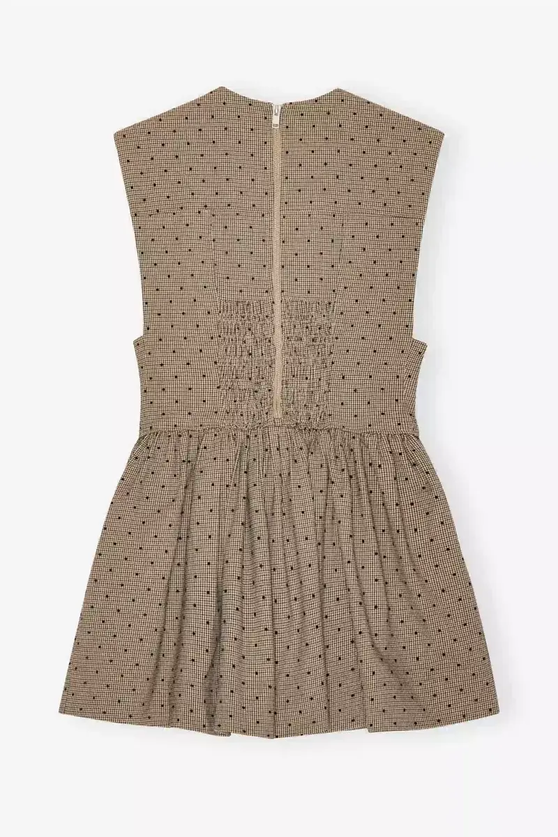 This Brown Flock Suiting Corset Mini Dress is a sleeveless dress with a round neckline, front pockets, a flared skirt, zip closure at the back and a smock back detail.