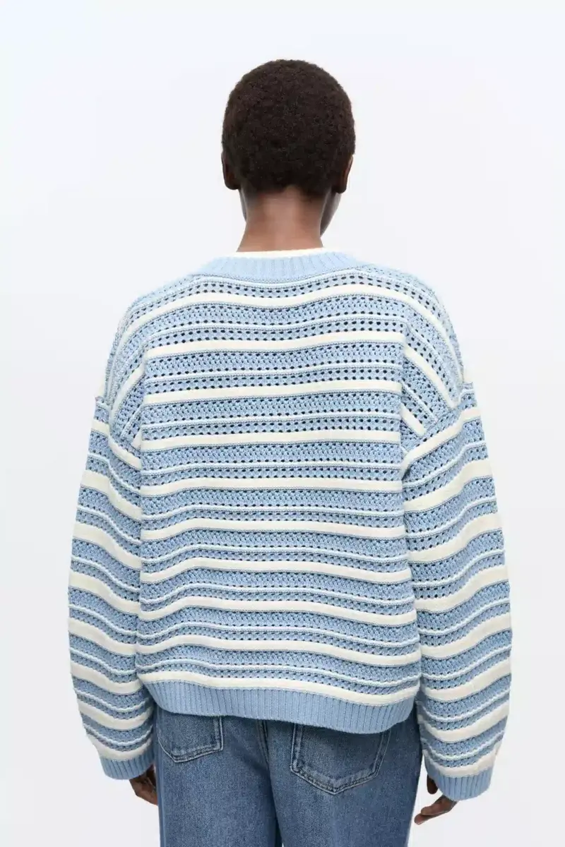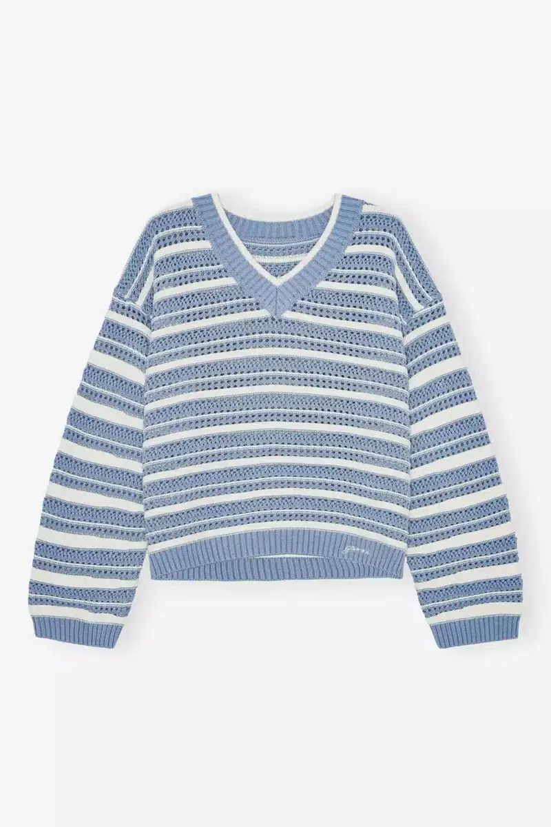 This jumper features a v-neckline, long sleeves and ribbed edges.