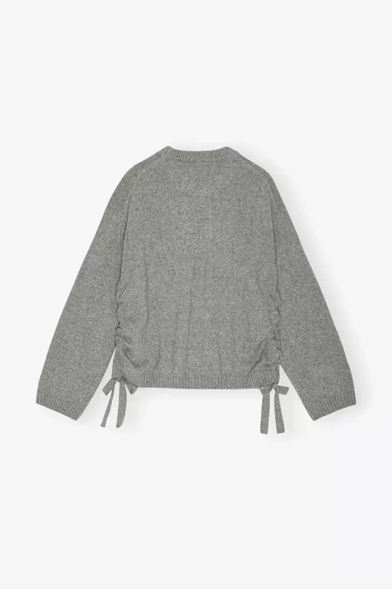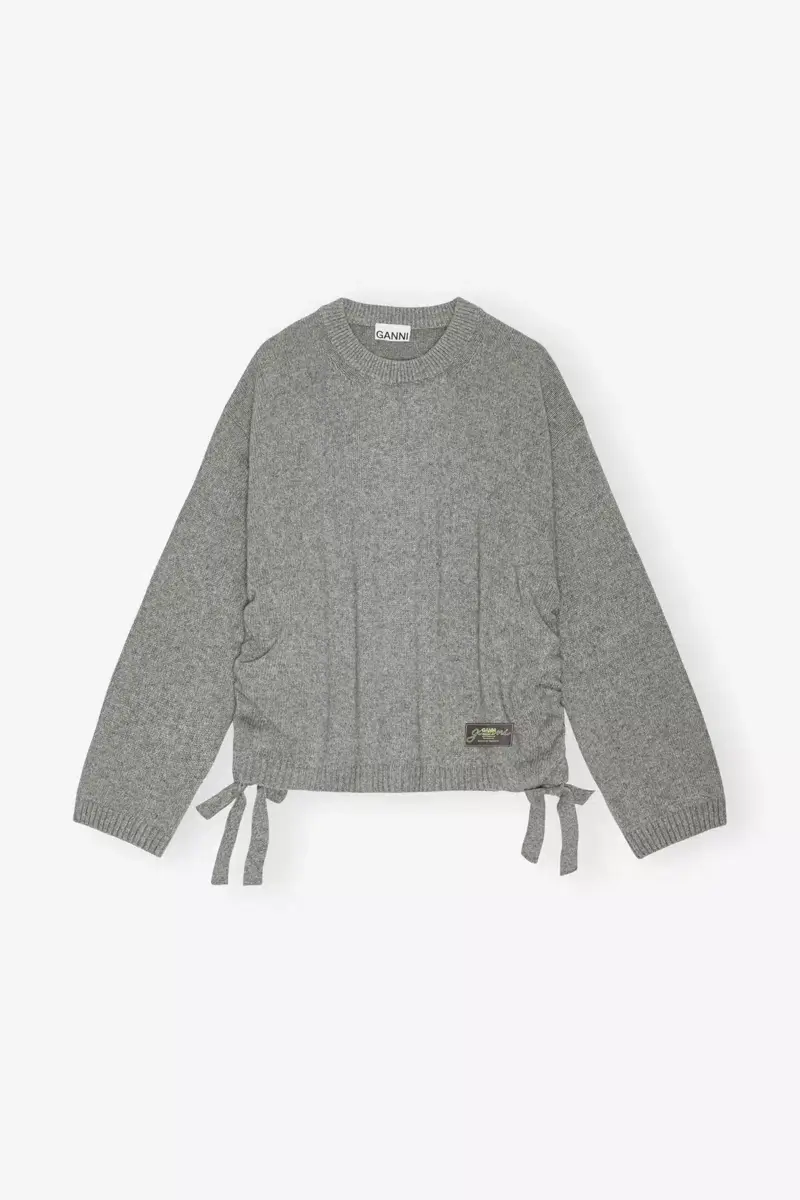 This jumper features a round neckline and long sleeves. The jumper has side tie details for adjustable styling and ribbed cuffs and neckline for a classic finish.