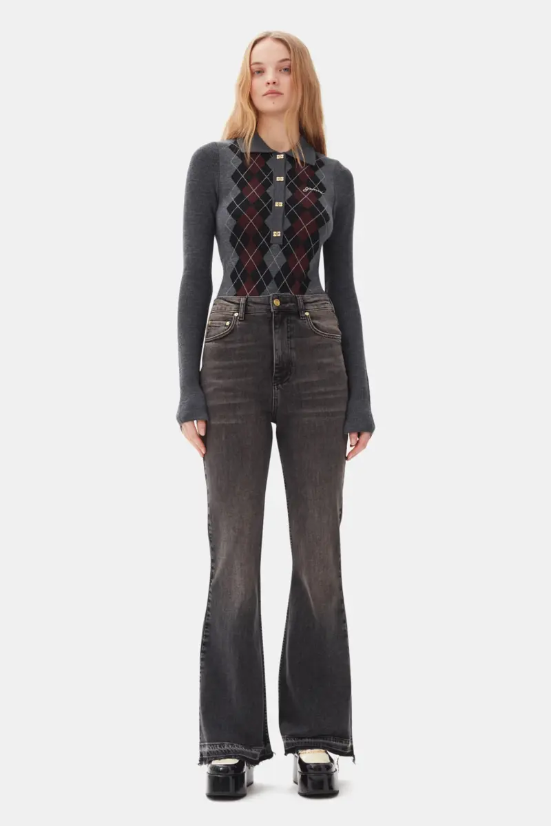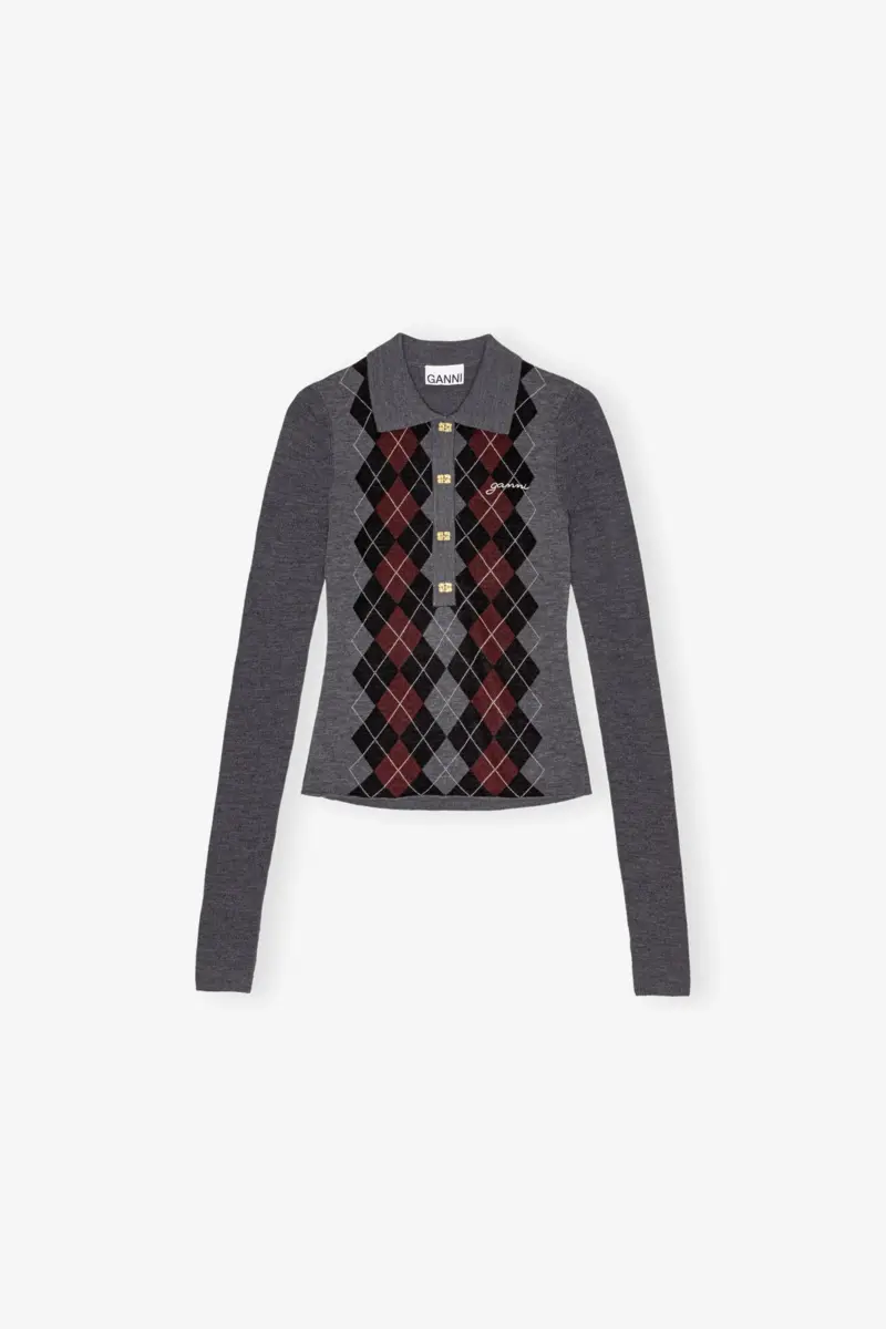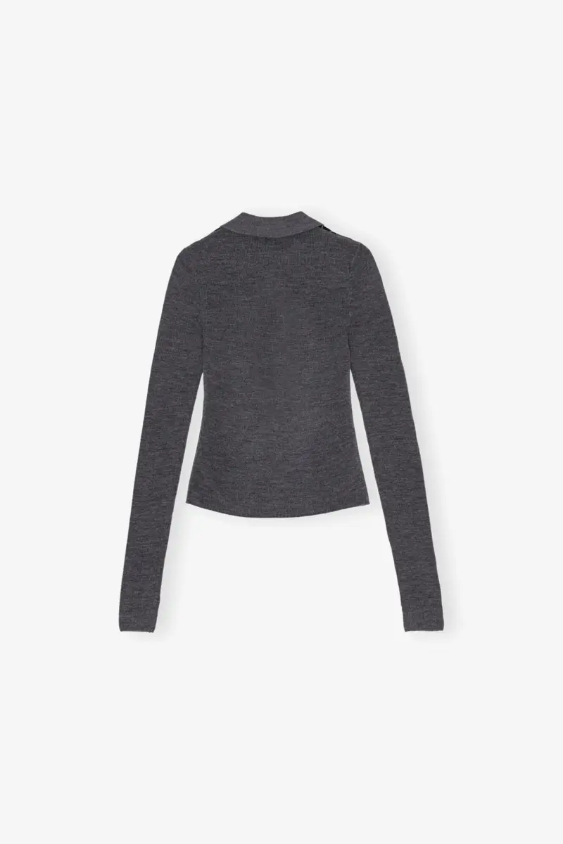 This shirt features a collar, long sleeves and a button closure with GANNI Butterfly buttons.
