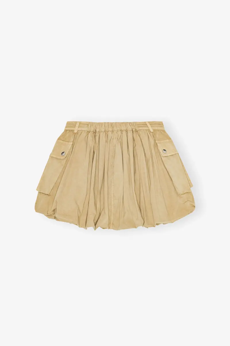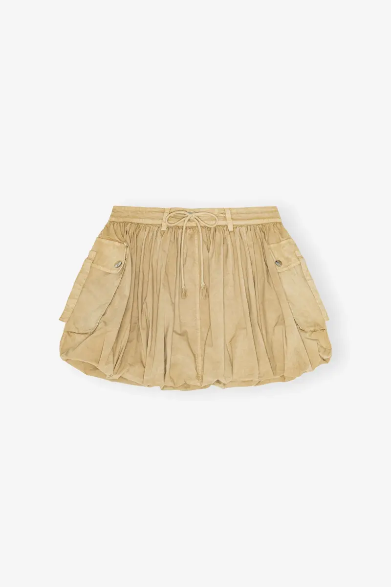 This Beige Washed Cotton Mini Bubble Skirt features belt loops, a drawstring closure and two side cargo pockets.