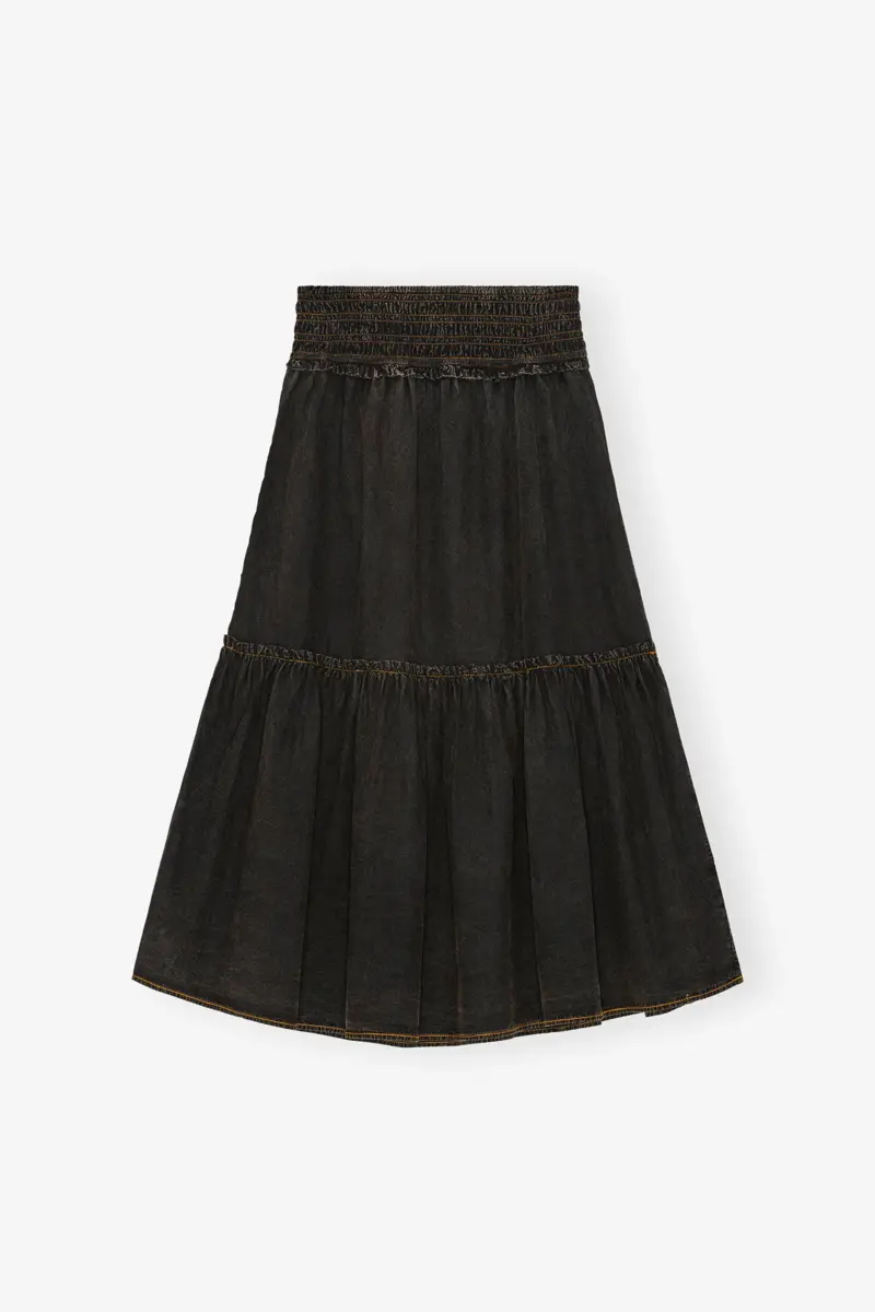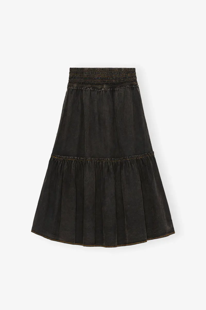 This skirt features a smocked waistband, a tiered design and contrast stitching.