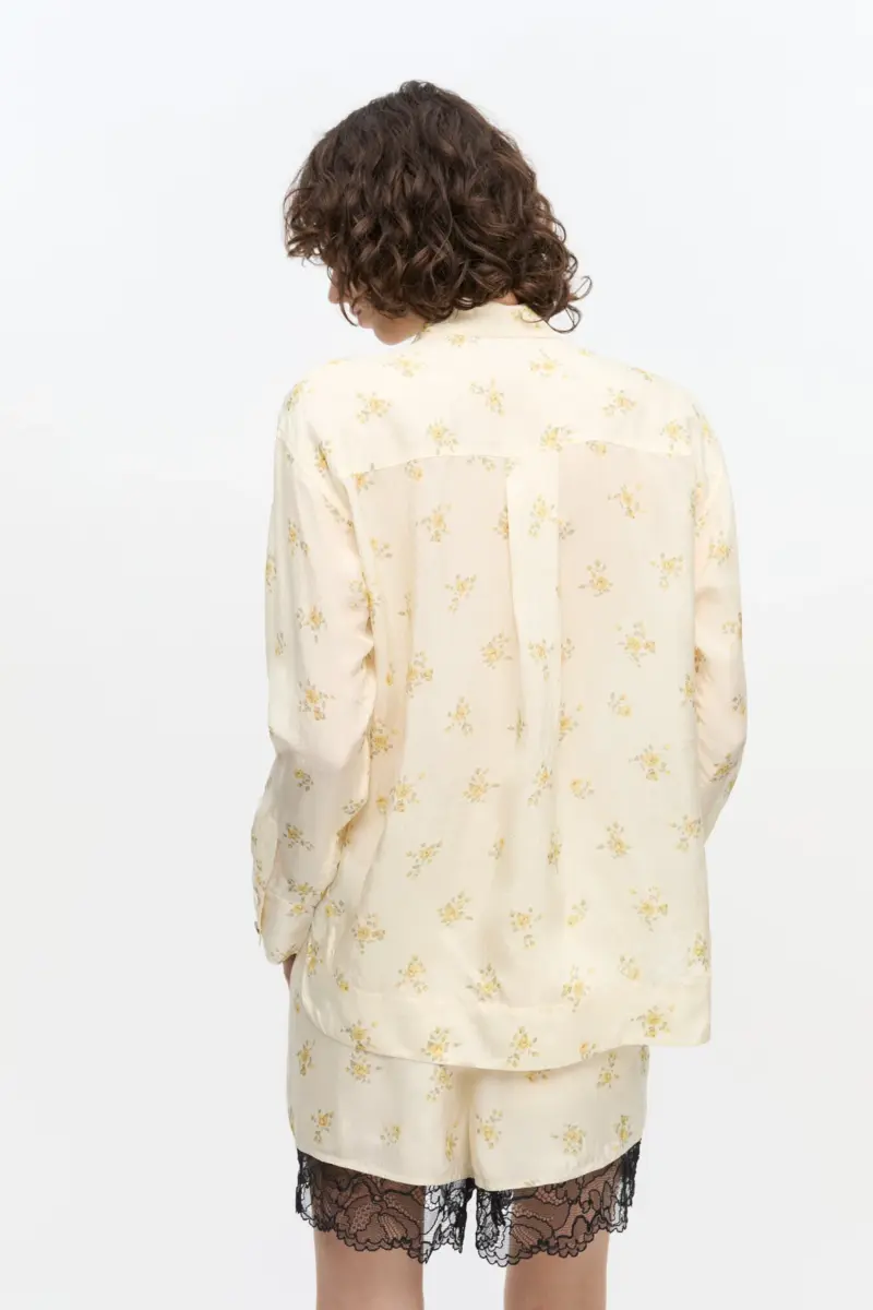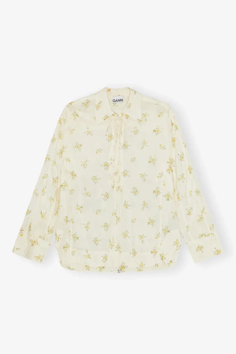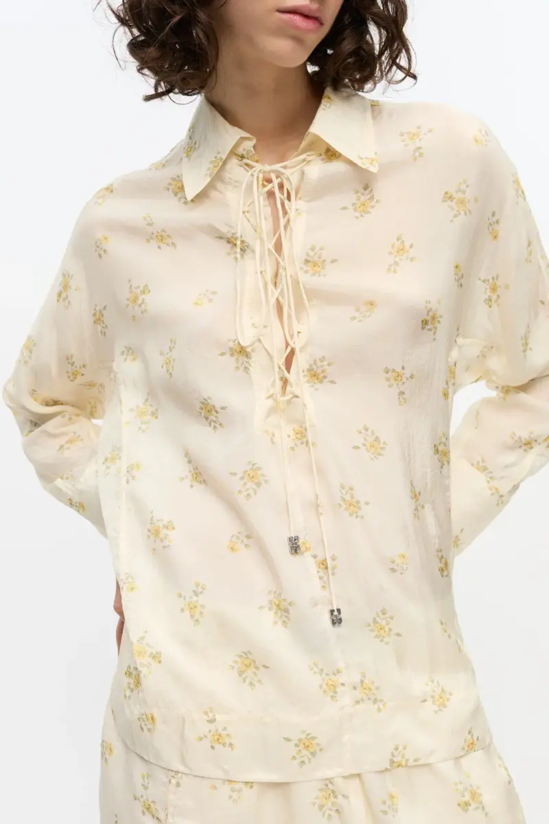Ivory Floral Tie String Shirt