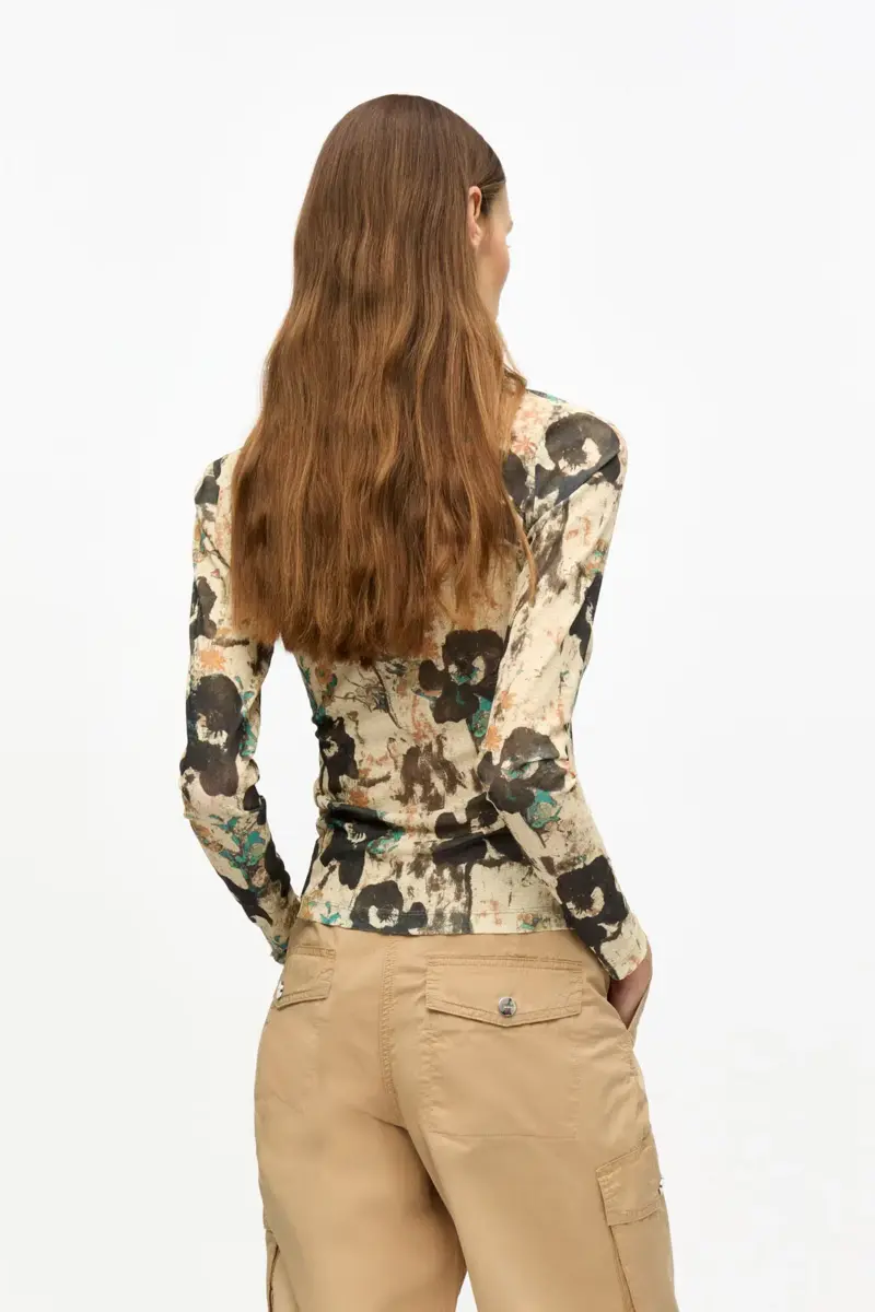 These trousers feature belt loops, a zip and button closure, a small front pocket, two side cargo pockets, back pockets and drawstring at the ankles.