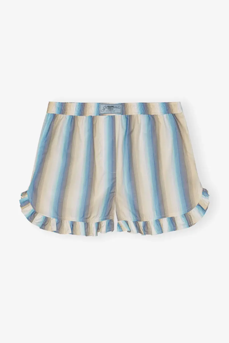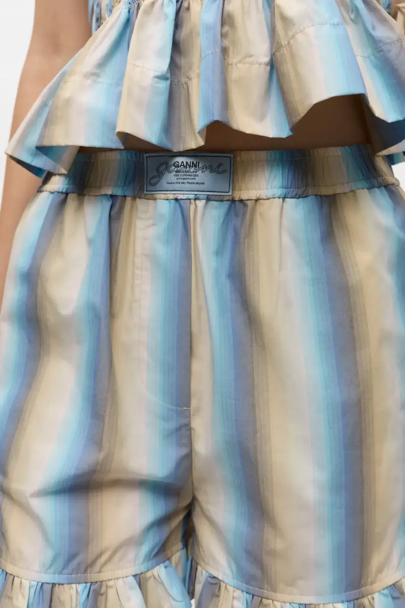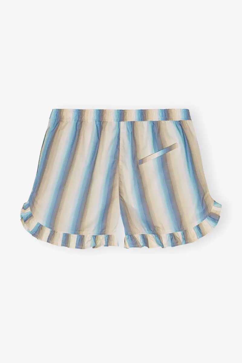 These shorts feature a multicoloured ombre stripe pattern, a GANNI patch logo and ruffle hem detail.